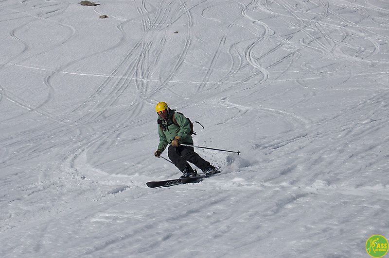 Само катание очень разнообразное. На самом верху огромные ледниковые поля, под ними - переплетение морен, скалистых склонов причудливой конфигурации, преимущественно крутых, еще ниже – лес на крутых обрывах. Там выбор между ездой среди стволов или по узким тропам-проездам в «чегетских» буграх. Вы постоянно катаетесь на рельефе, который требует от вас настоящих усилий и настоящего умения.
