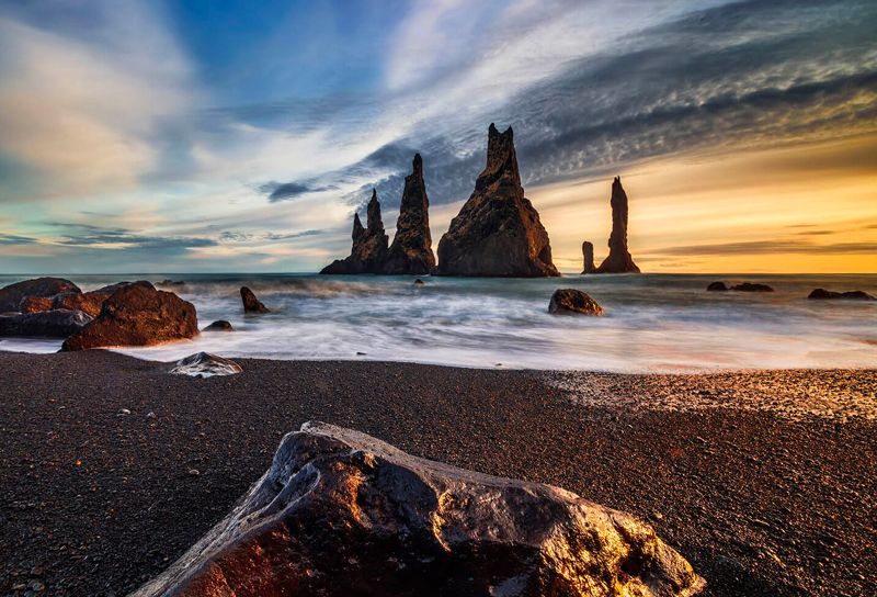 У нас будет очень насыщенная программа на земле гейзеров, водопадов, вулканов, ледников и айсбергов. Мы прогуляемся по черному пляжу, где высадился Флоки, из сериала Викинги, вместе с Джоном Сноу откроем земли одичавших за Стеной и побываем на съемочной площадке Интерстеллара в ледниковой пещере. Наш путь пройдет по южному побережью острова – от Рейкьявика и до горы Вестрахорн. А передвигаться мы будем на новых полноприводных электрокарах Tesla и Polestar (Volvo). Большой запас хода и развитая сеть зарядных станций не позволят нам застрять среди исландской черной пустыни.