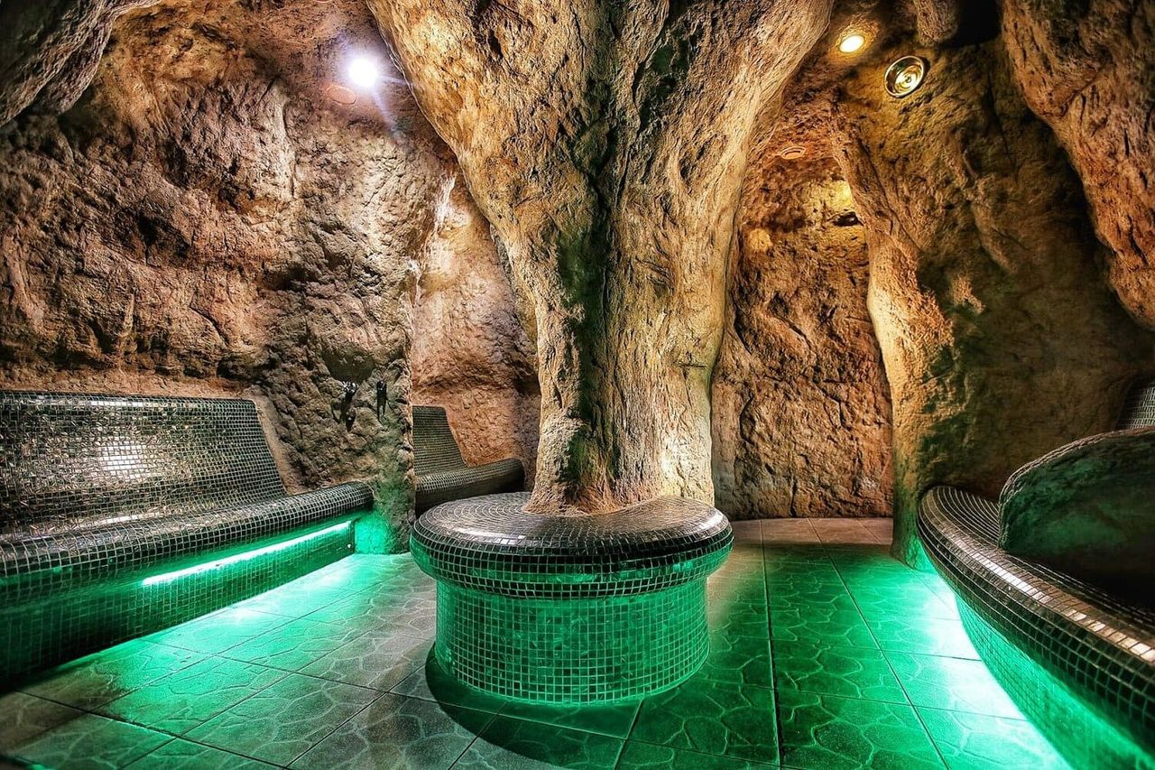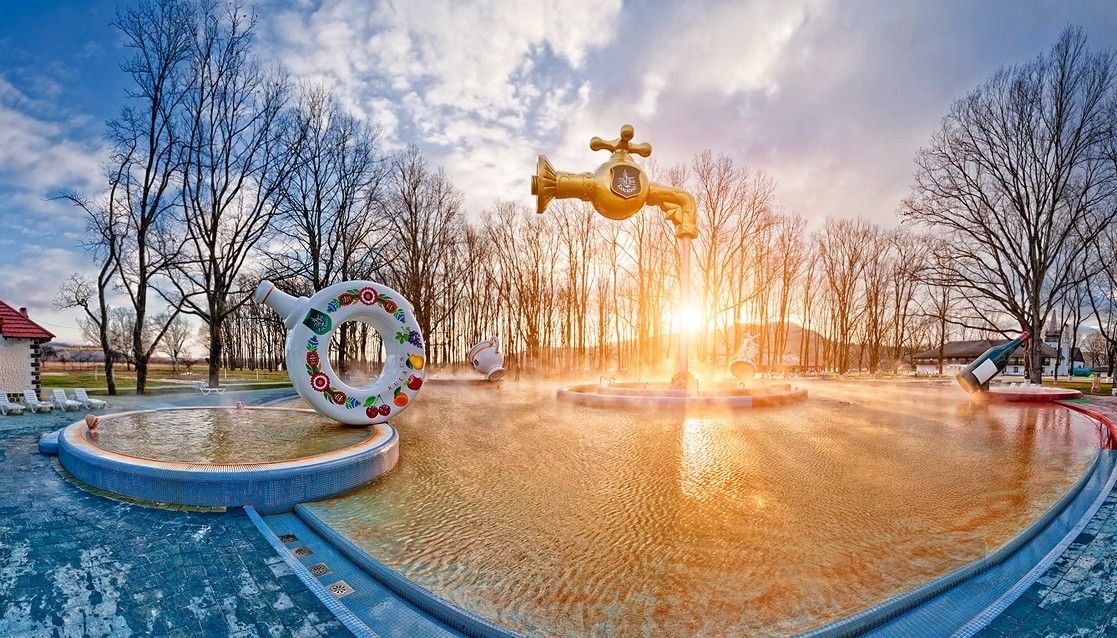 Чего здесь только нет! 4 экстремальные водные горки разной длины и уровня сложности, 2 бассейна (крытый и под открытым небом) с термальной водой, 2 крытых минеральных джакузи, турецкий хамам, японская инфракрасная и финская сауны.