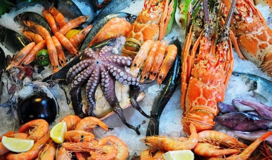 - много свежих морепродуктов и фруктов;