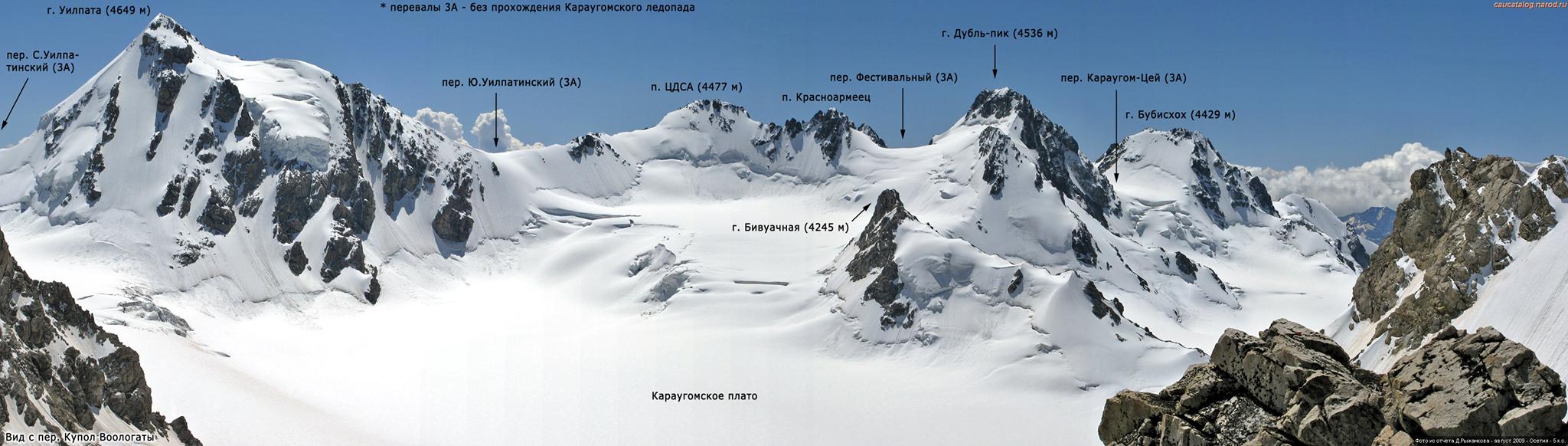 Восходители на трекинговые вершины на Кавказе – Казбек, Лайлу, Тетнульд и слухом не слыхали о Караугомском плато. Место уникальное. О нем помнят в основном только суровые горники 80-90-х годов. Второе плато на Кавказе – Ушбинское, в несколько раз меньше. И больше таких красот тут нет. При хорошей погоде виды не то что кулловские, – уникальные. Ориентировочная сложность восхождения 2А — 2Б. Тут неизвестны восхождения с 90-х. И можно стать первым. Даже Наумов, гуру гайдбуков по Кавказу 80-х, обошел часть вершин стороной, да и многое что поменялось с тех пор.