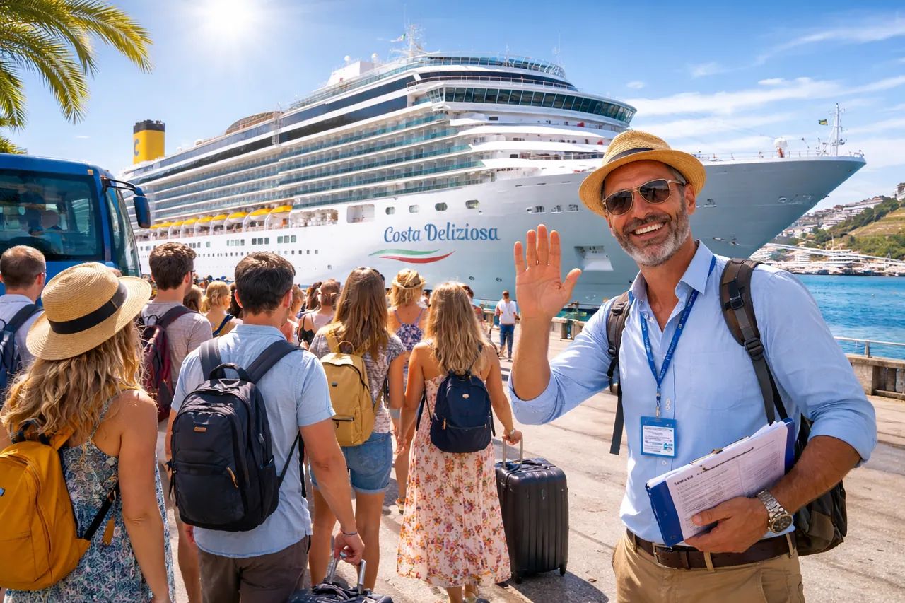 ✨ Італійський шарм 🏝 грецькі острови 🚢 відпочинок і розваги на лайнері І найбільший сюрприз нашої подорожі – круїз на розкішному лайнері Costa Deliziosa , з анімаційною програмою, театр шоу-вар’єте, басейнами та джакузі на верхній палубі. А ще на нас чекає багата морепродуктами середземноморська кухня від найкращих шеф-кухарів Італії. Це більше, ніж подорож — це ваша історія серед моря та найкрасивіших міст Європи