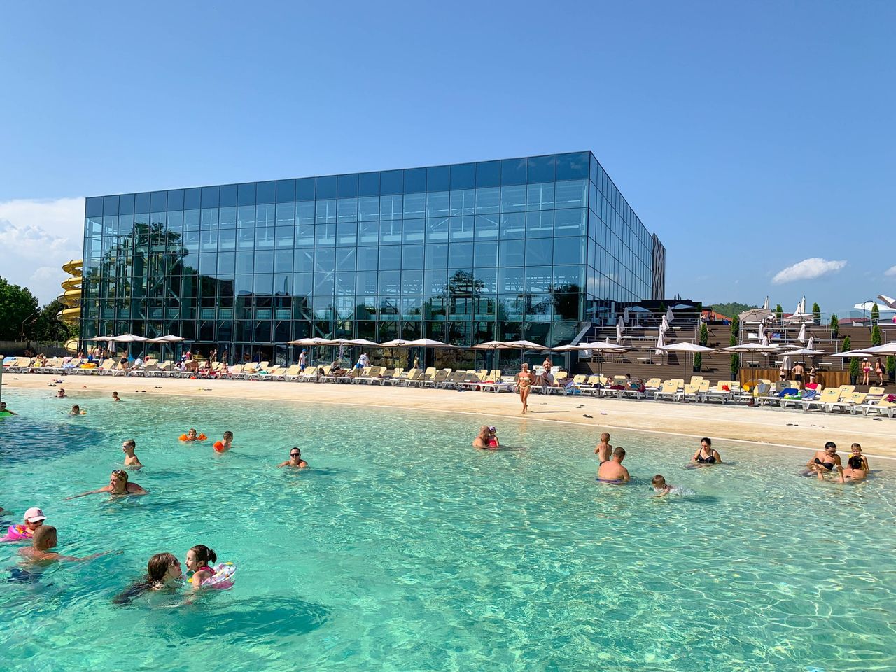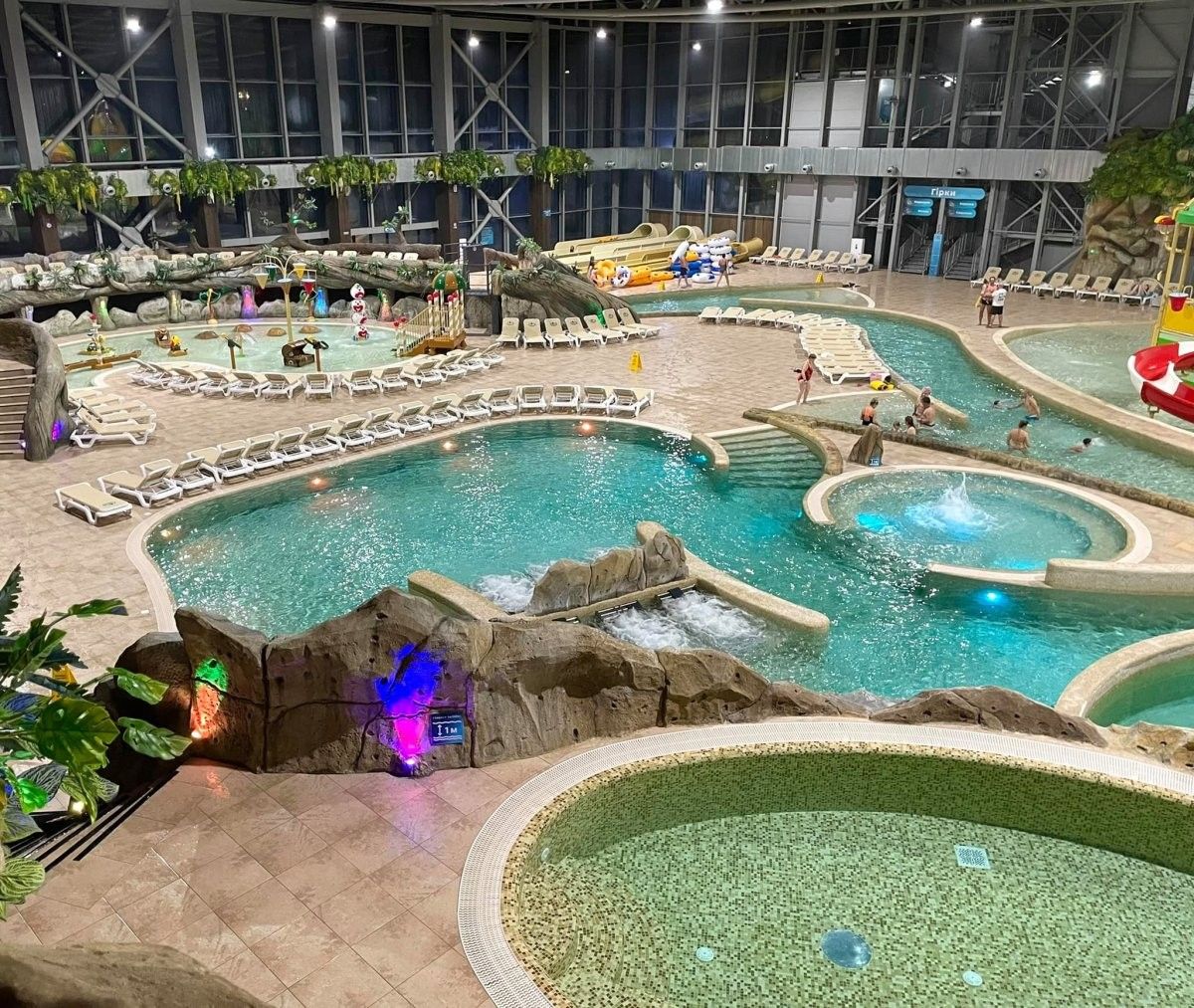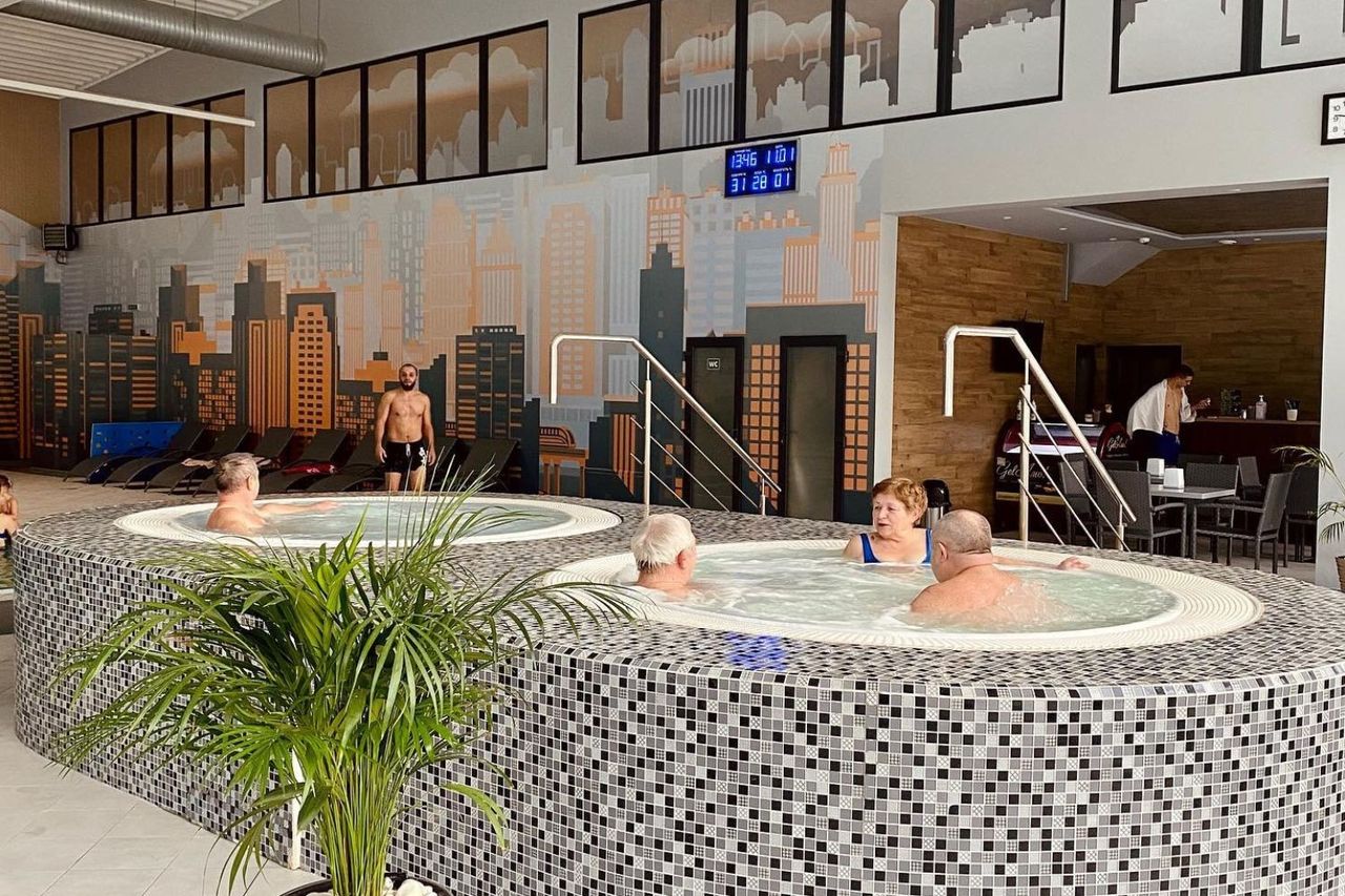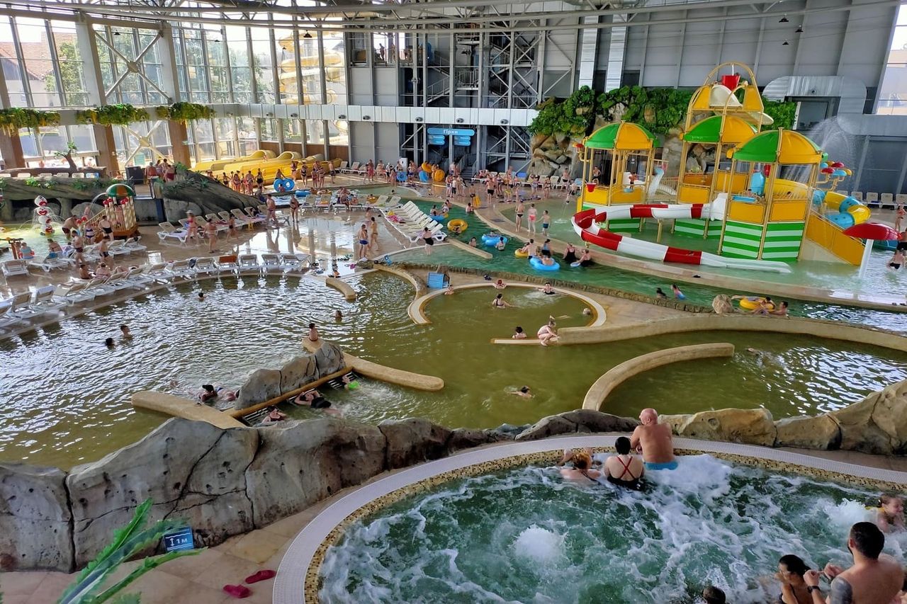 Чого тут тільки нема! 4 екстремальні водні гірки різної довжини та рівня складності, 2 басейни (критий і під відкритим небом) з термальною водою, 2 критих мінеральних джакузі, турецький хамам, японська інфрачервона та фінська сауни.