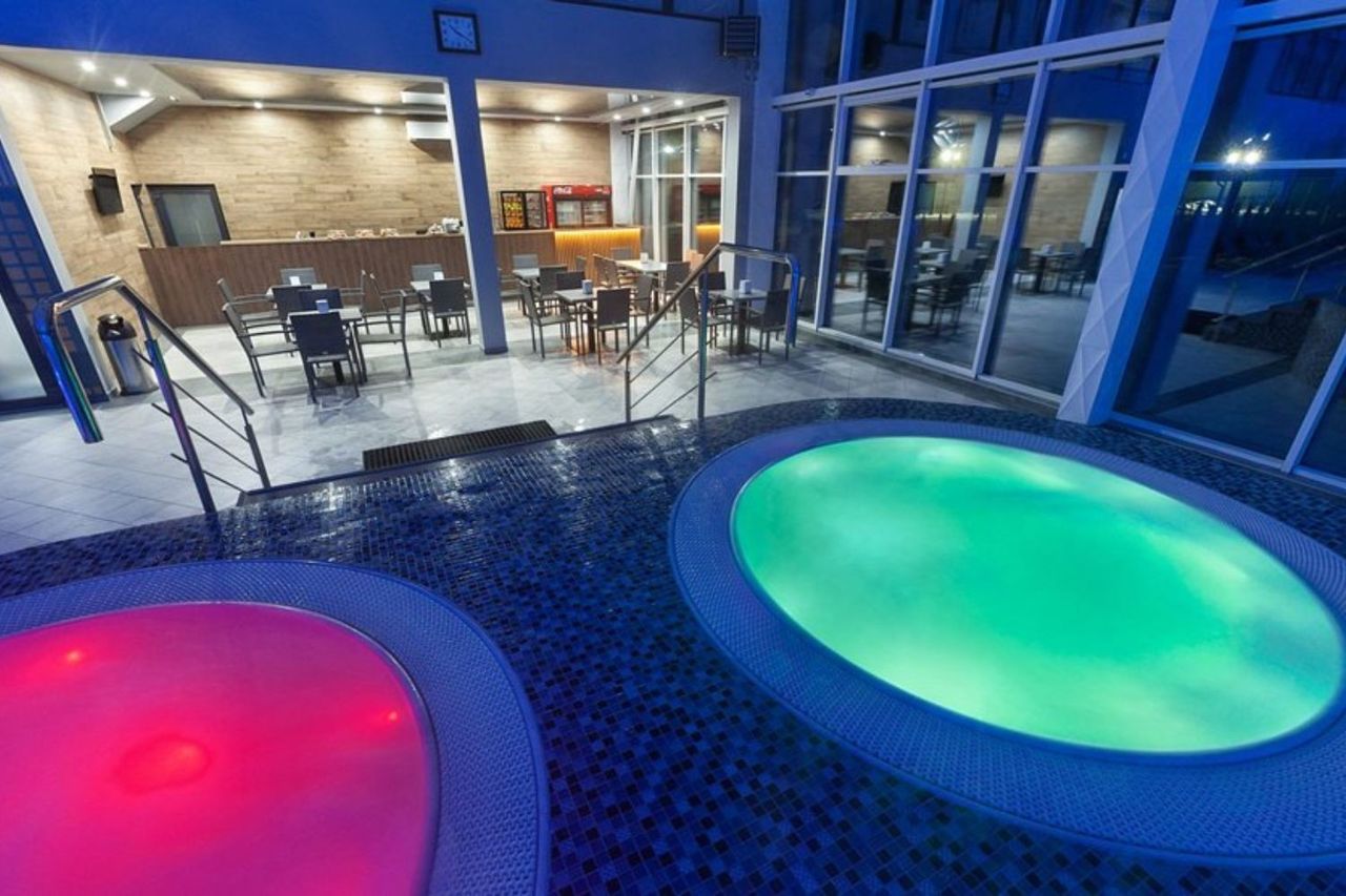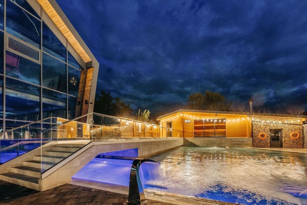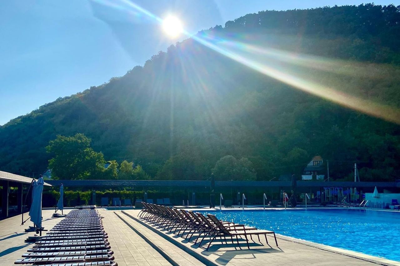Лікувально-оздоровчий комплекс “Еко термал” зустріне вас двома розкішними термальними басейнами! Перший – просторий відкритий термальний басейн із температурою води 38-39°C. Ви зможете насолодитися купанням під відкритим небом, оточені живописними пейзажами, що створює неповторну атмосферу спокою та умиротворення. Другий – закритий, де ви можете релаксувати в будь-яку пору року. Тут вода збагачена мікроелементами, що благотворно впливають на шкіру та загальний стан здоров’я. До речі, тутешня вода допомагає при різних захворюваннях, включаючи проблеми з опорно-руховим апаратом, серцево-судинними та неврологічними недугами. Комплекс також пропонує різноманітні водні процедури, включаючи гідромасажі, які забезпечать вам додаткові відчуття та емоції.