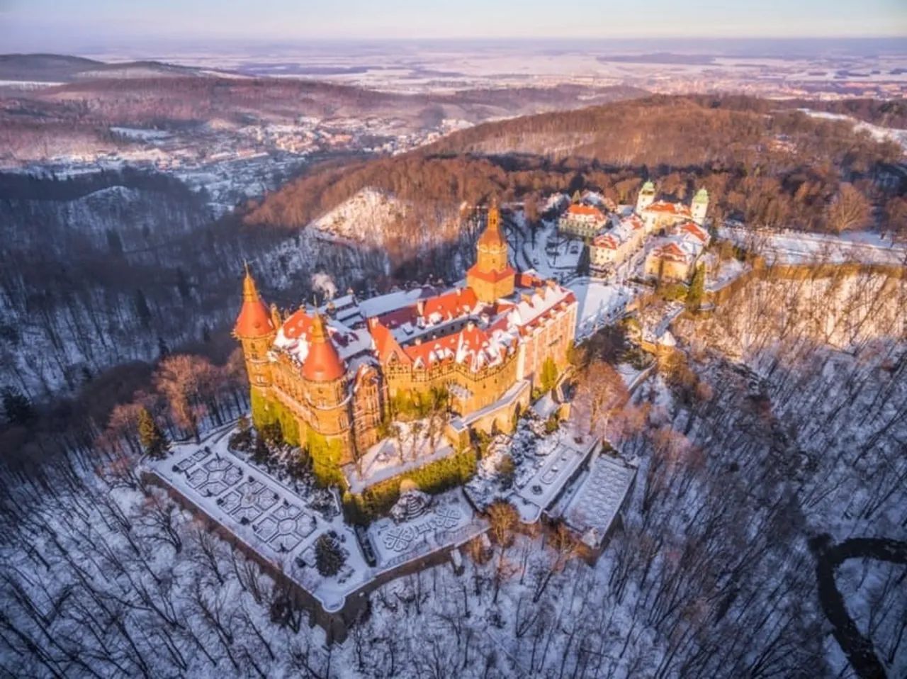 В околицях міста Валбжих, серед мальовничої природи, височіє величний Замок Князь. В 1288 році на місці руїн старої фортеці князь Болеслав І Суровий вирішує побудувати пишну резиденцію, яка вже руками його нащадків з роками була перебудована в пишний замок. Назва Князь вказує на те, що у давні часи тут була резиденція княжої родини Пястів (ХІІІ-ХІV ст.). З XVІ століття і до Другої світової війни твердиня належала німецькому аристократичному роду фон Гохбергів і носила назву замок Фюрстенштайн. Архітектурний ансамбль замку зводився в різні часи та епохи, тому тут можна знайти елементи романського стилю, готики, ренесансу, бароко та неоготики. З Великої Вежі відкривається красивий вид на довколишні території. На сьогоднішній день територія і сама будівля є добре відбудованою і відреставрованою. Ансамбль складає – сам замок, конюшні, паркова зона і входи в тунелі. Запрошуємо оглянути красивий і величний Książ, третій за величиною замок Польщі!